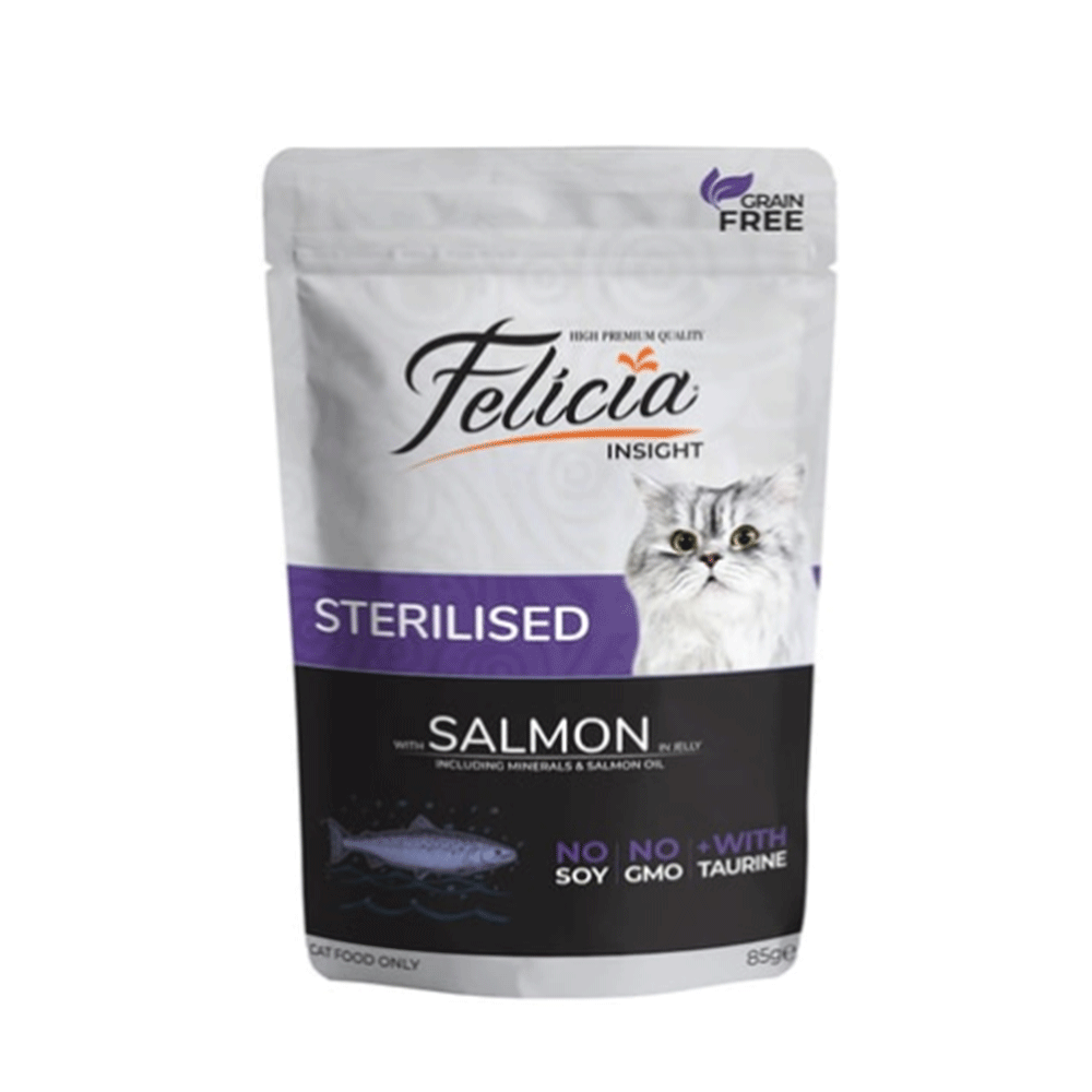 امنح قطتك المعقمة وجبة صحية ومتوازنة مع طعام فيليشيا الرطب بدون حبوب بنكهة السلمون،